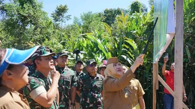 Bupati Hj. Ratna Machmud dan Pangdam II/Swj Cek Lahan Yonif TP 947/Pangeran Amin